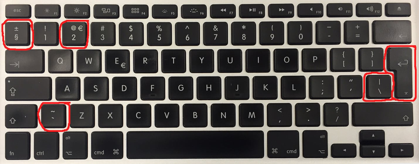 Een vaak voorkomend type in Nederland is US internationaal. Hieronder een afbeelding van dit toetsenbord op een Macbook Pro.